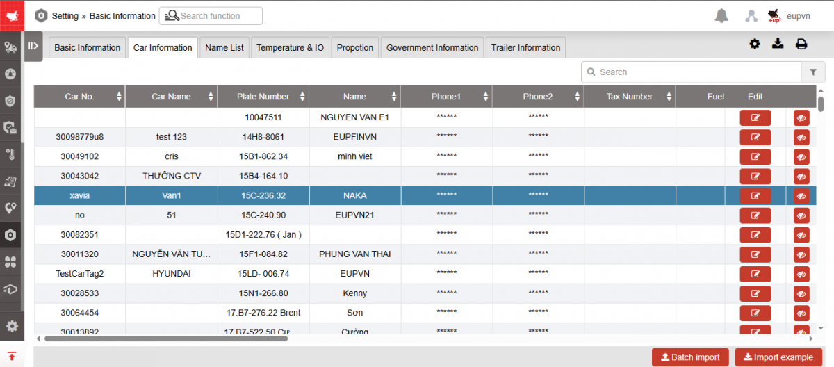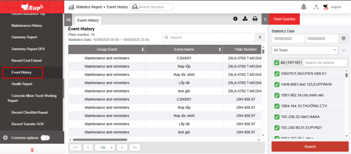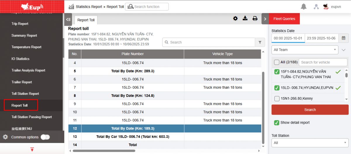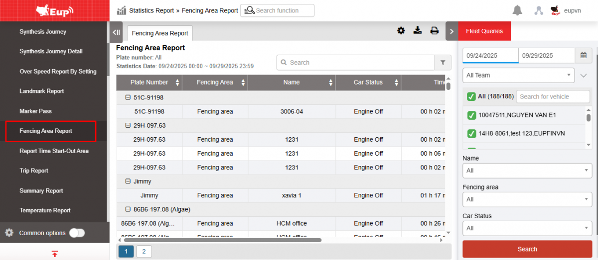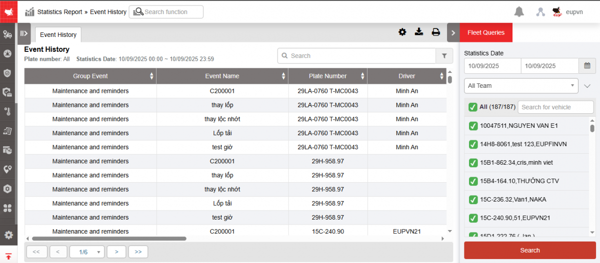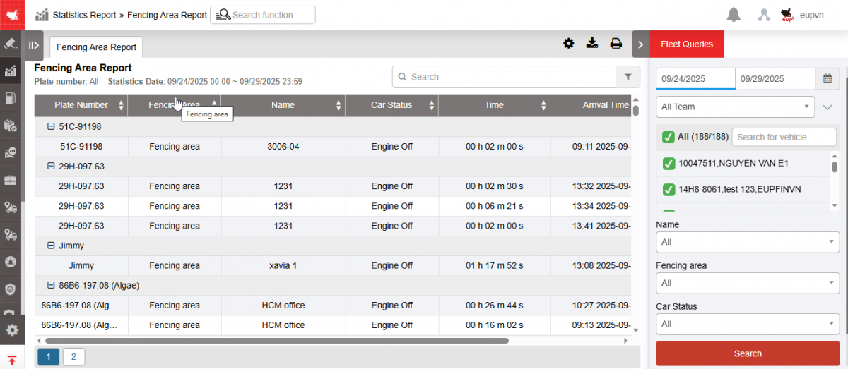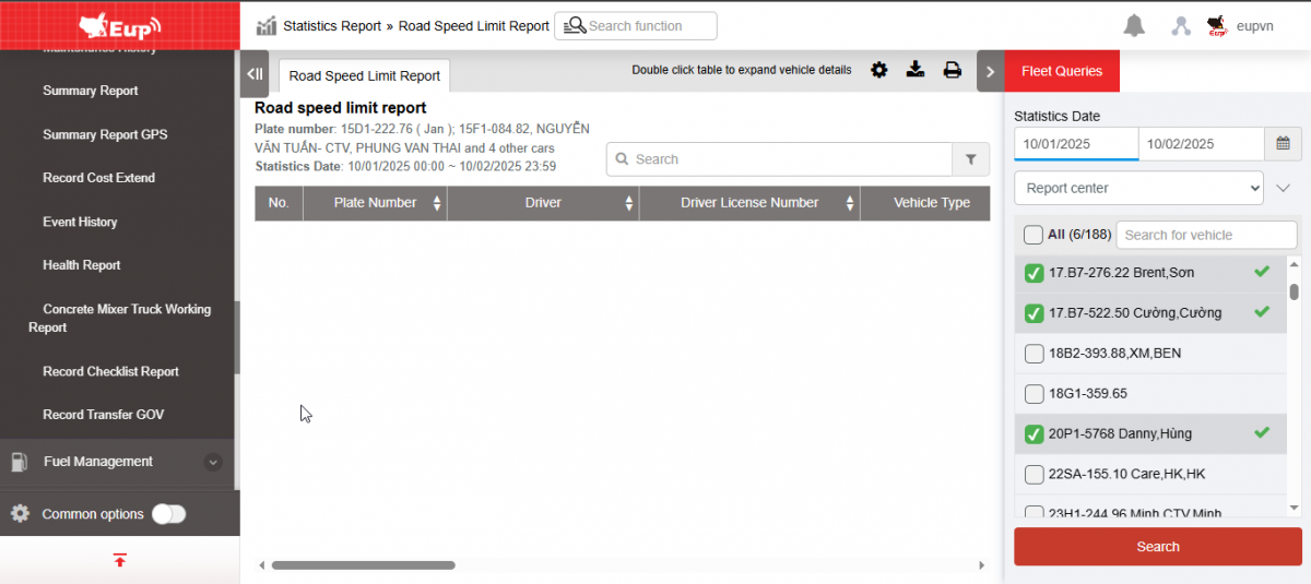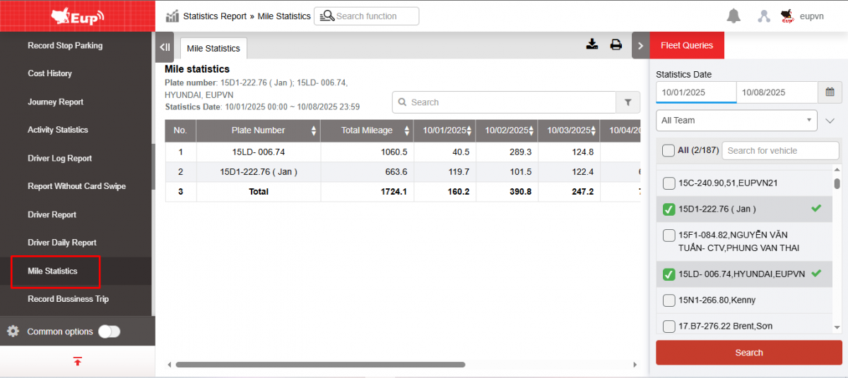 + The Fleet Queries section allows users to search and view the journey of each vehicle in the fleet within a certain period of time.