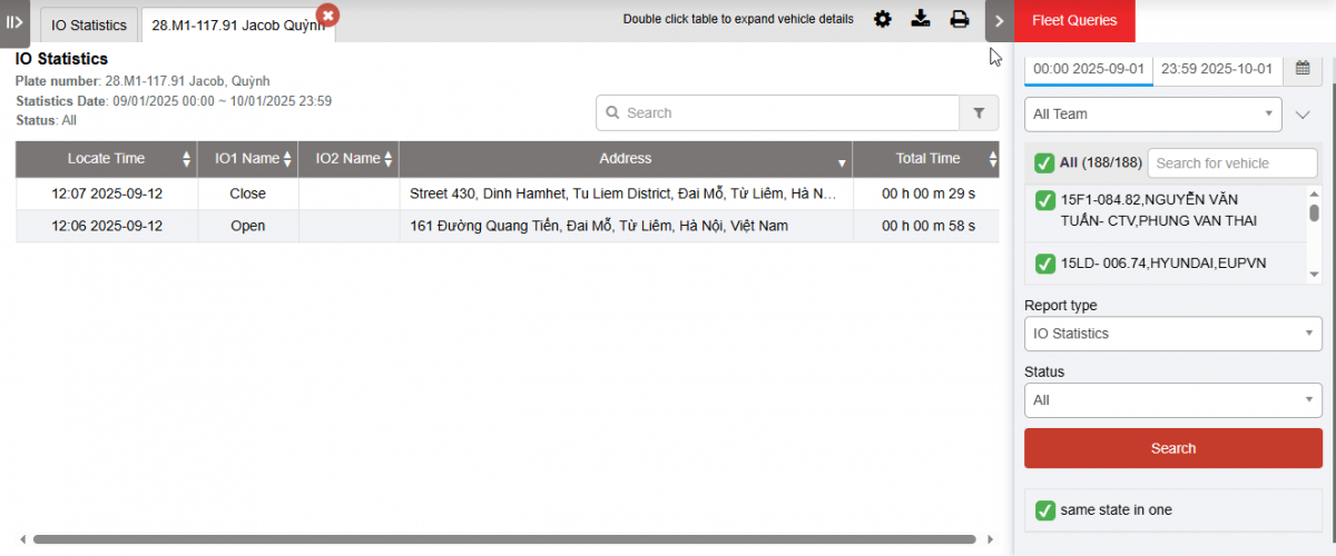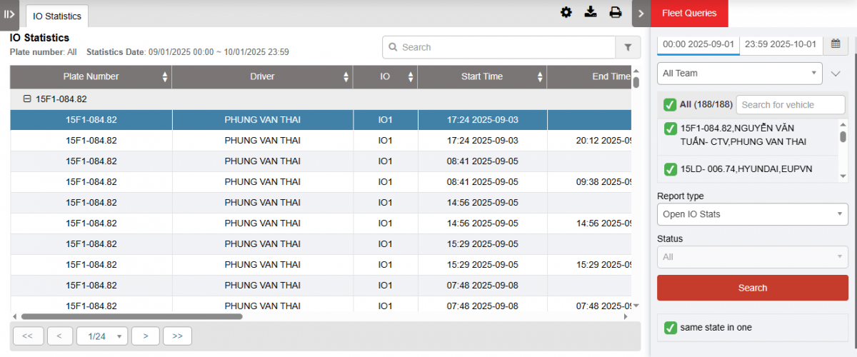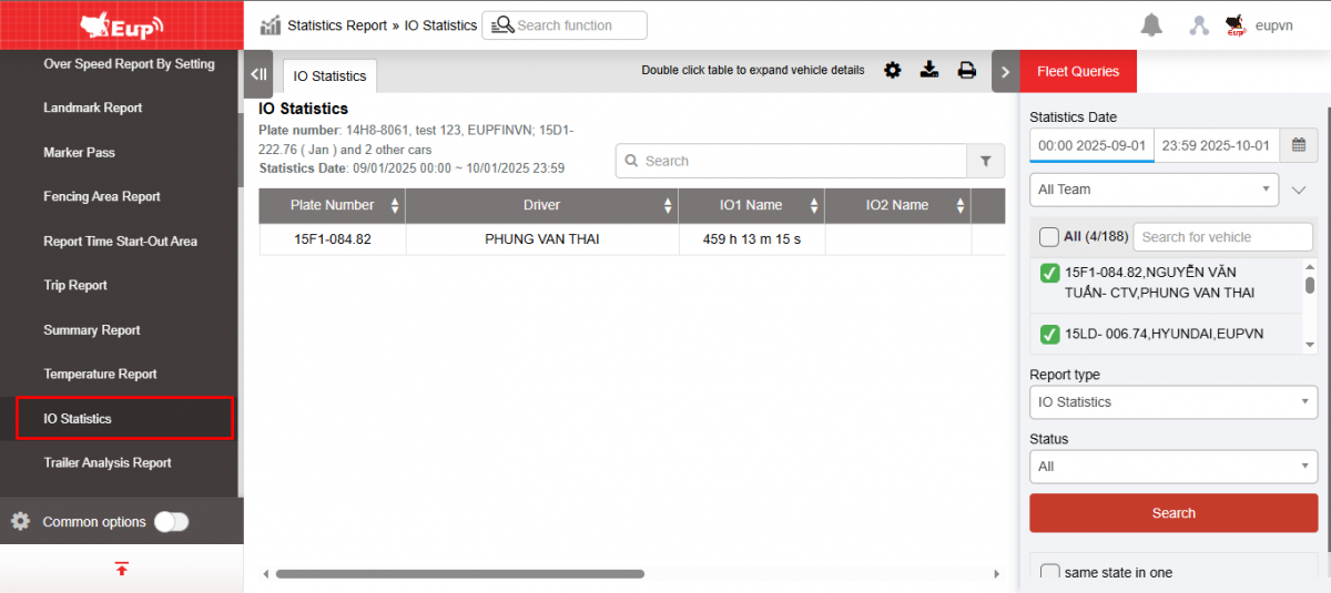 + Report section : Allows users to view details of air conditioner on and off time. There are 3 types of reports including IO Statistics, Open IO Statistics