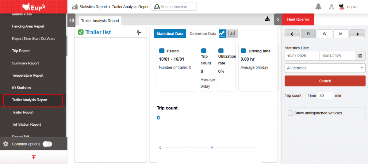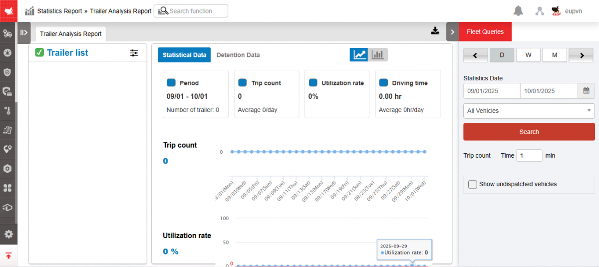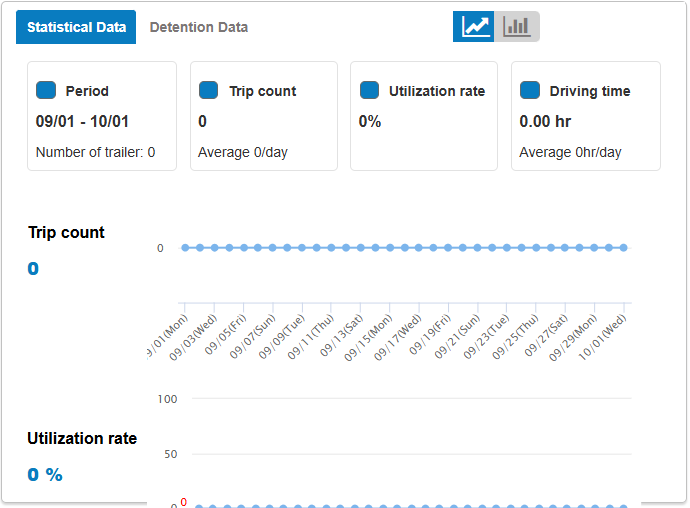 - Allows users to check statistical data on the number of trips, usage rate, and trailer operating time in the form of a chart. At the same time, through the chart, users have a visual view of the trailer usage situation.