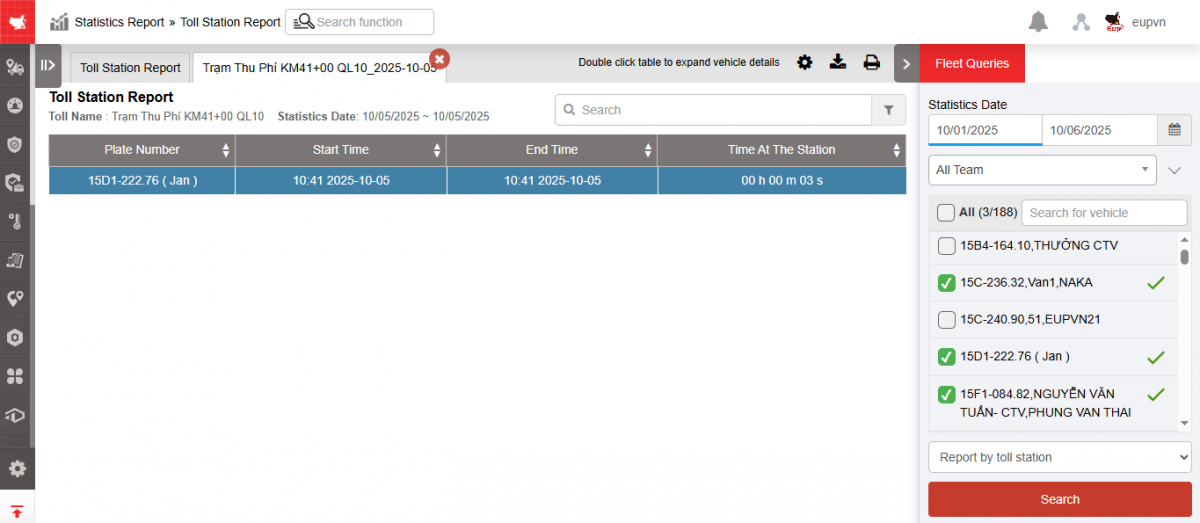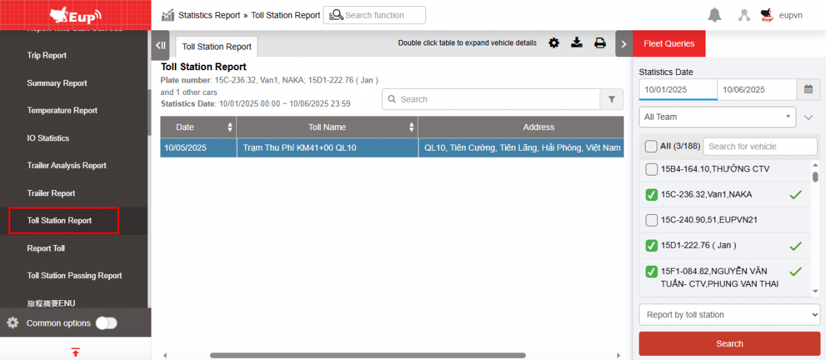 2. The Toll Station Report section allows displaying statistics on the number of times the toll station enters and exits.