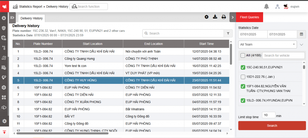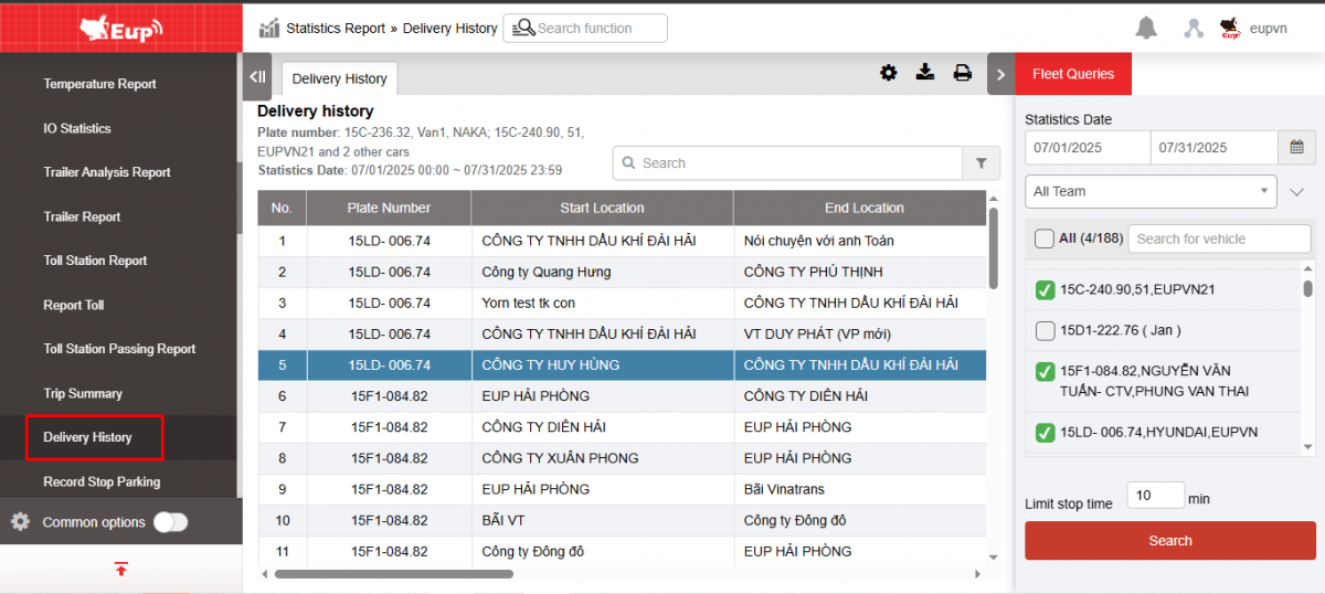 Limited parking time: Allows user to set parking limit of 1 vehicle, the display result will show vehicles with parking time greater than the limited parking time