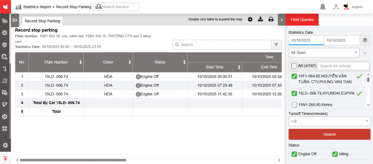 - Support users to create driver parking reports, thereby detecting unusual parking points that are not on the vehicle's route.