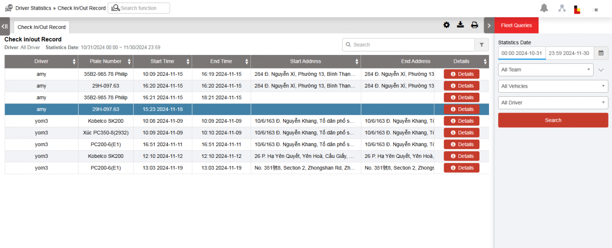 - Navigate to the Driver Statistics»Check in/out Record