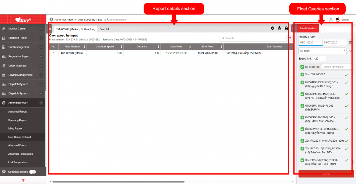 - Go to the Abnormal Report»Over speed by input